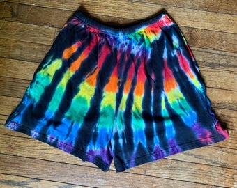 Stained Glass (Rainbow and Black) Swirl Tie-Dye Shorts